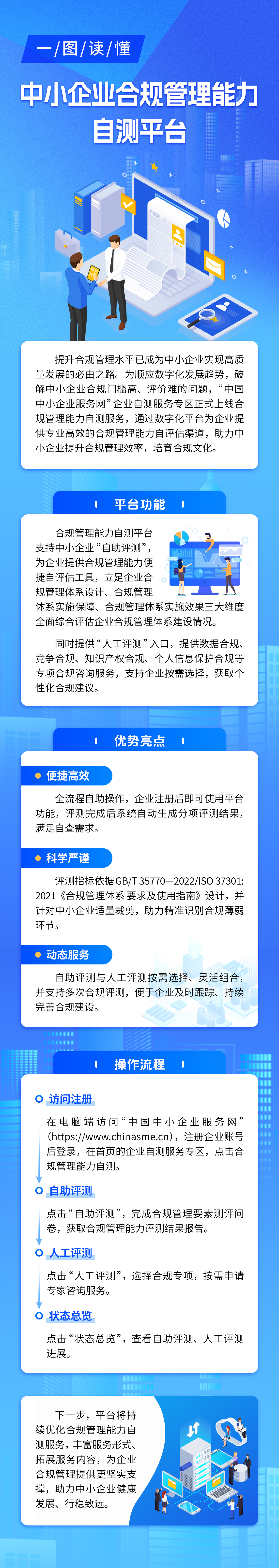 近日,中小企业合规管理能力自测和管理诊断自测工具在中国中小企业服务网(以下简称“服务网”)自测服务专区正式上线运行,为广大中小企业提供公益性诊断服务。