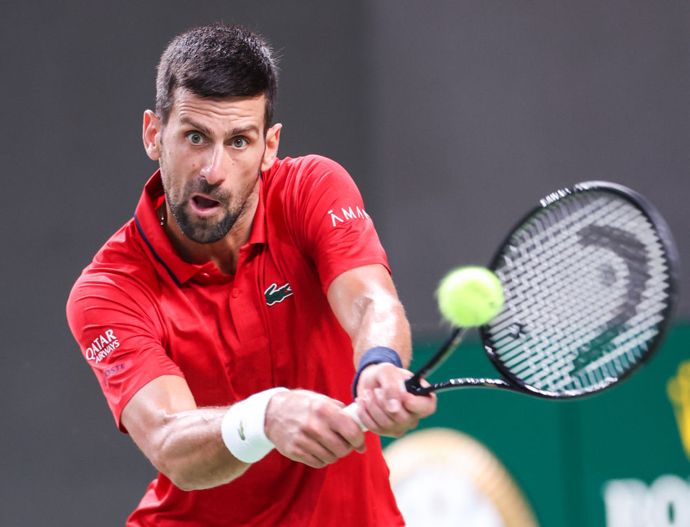 10月9日,焦科维奇在比赛中回球。当日,在2025年ATP上海网球大师赛男子单打四分之一决赛中,塞尔维亚选手焦科维奇2比0战胜比利时选手贝格斯,晋级四强。新华社记者 丁汀 摄
